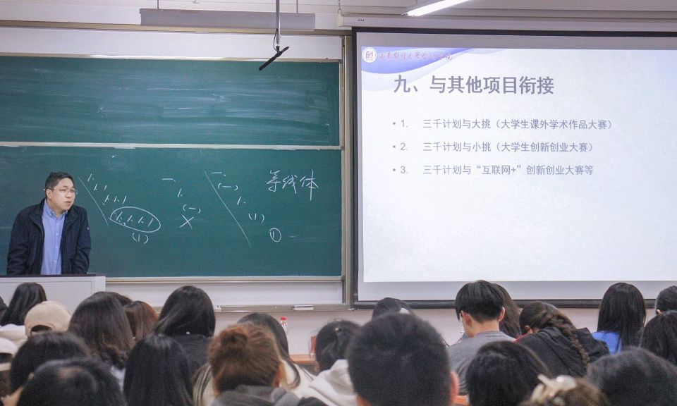 韩跃向同学们详细讲述了三千计划的活动由来、选题立项、调研计划、团队协作、调研报告撰写等方面内容。他鼓励同学们领悟发扬“三千精神”,厚植家国情怀,勇于实践,积极探索,服务社会。