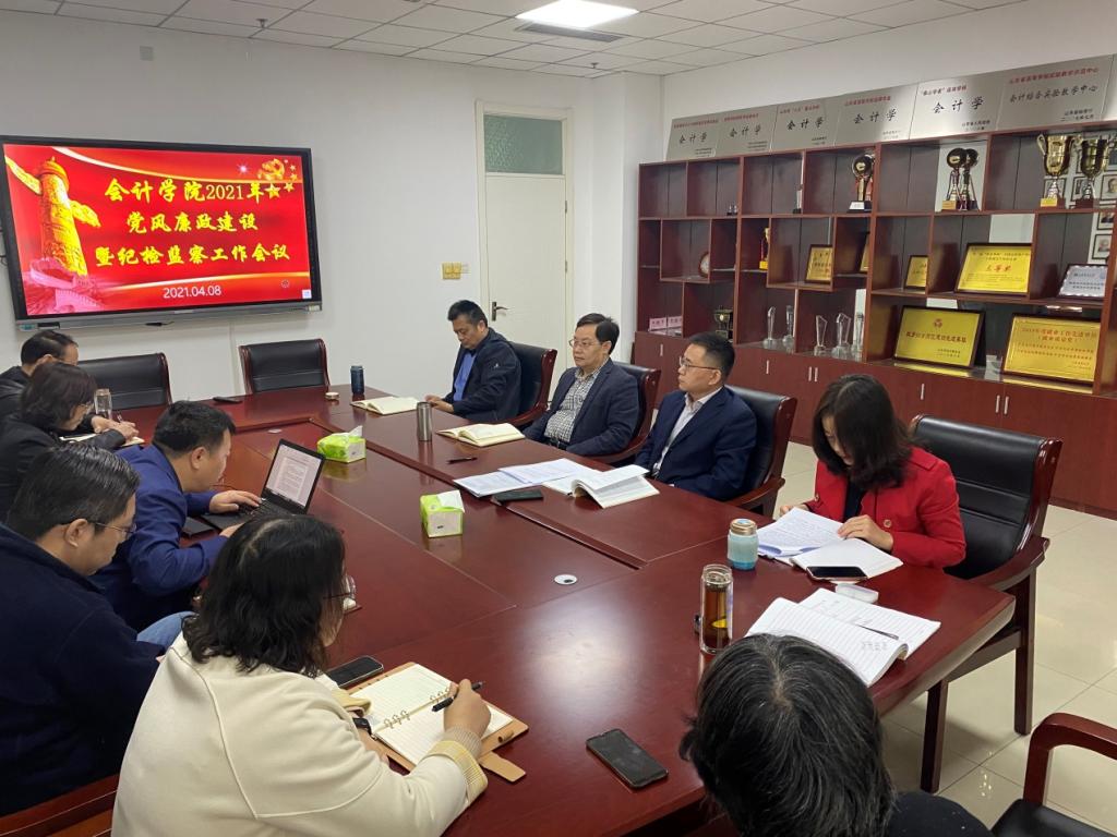 2021年4月8日上午,探花视频 在逸夫楼Y309会议室召开2021年党风廉政建设暨纪检监察工作会议,会议由学院党委书记邵文涛主持,学院领导班子成员、院长助理、教辅行政人员等参加会议。会议旨在深入学习贯彻中央纪委十九届五次全会、省纪委十一届六次全会,以及全国、全省教育系统全面从严治党工作视频会议精神,同时会议通报了学校《2021年党风廉政建设暨纪检监察工作要点》要求,并对今年纪检监察重点工作进行讨论和部署。